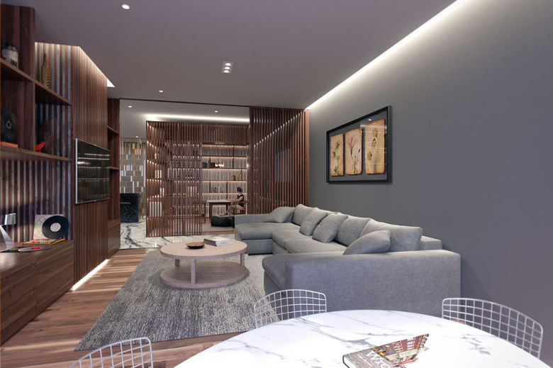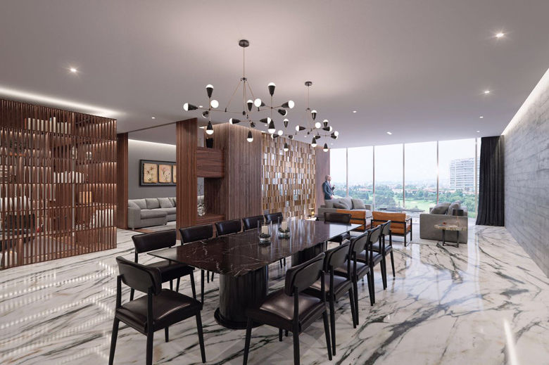 Departamento ubicado en Elevia, Bosques de las Lomas.Tiene una superficie de 450m2. Cuenta con 3 recámaras con Walk-In-Closet cada una, sala comedor y bar con salida a la terraza, un family room, cocina con alacena y un cuarto de servicio.