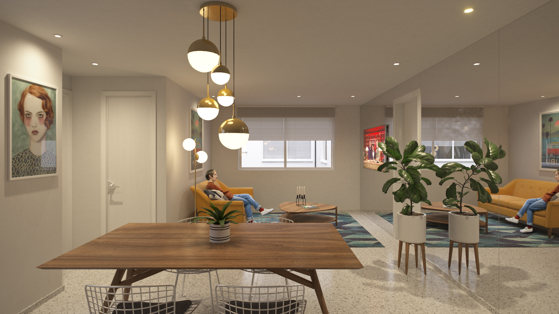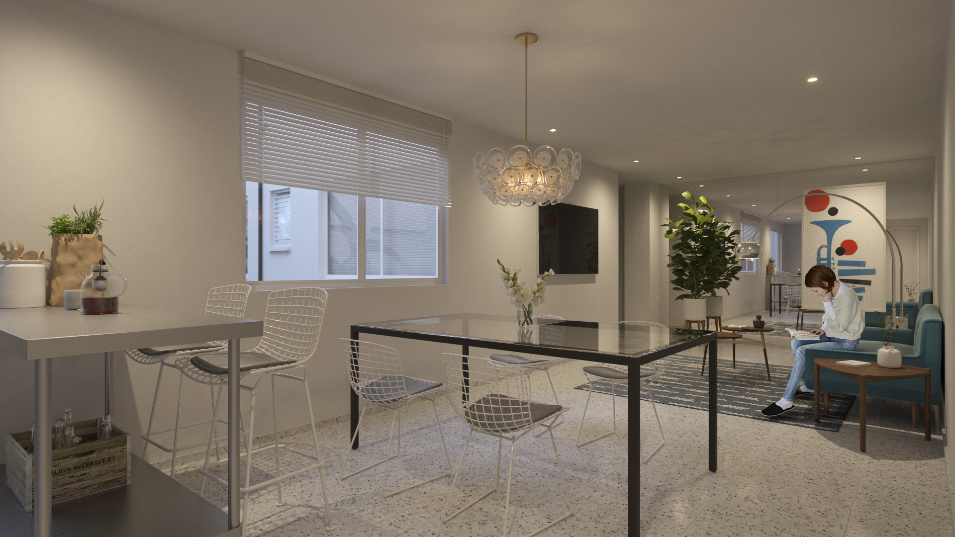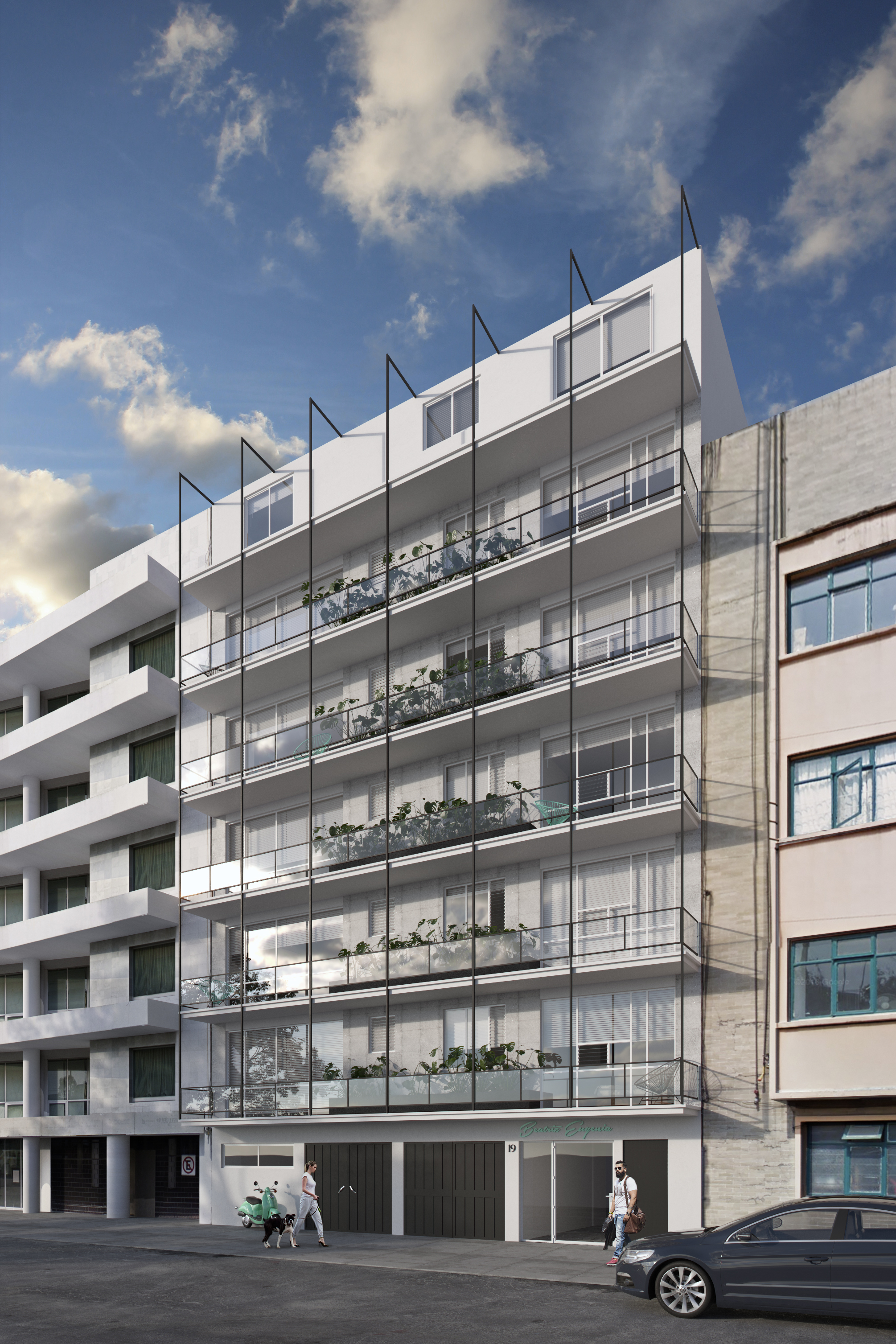 Edificio de 6 niveles con 19 departamentos de 50 a 75m2. Cuenta con Roof Garden común, patio central y terrazas privadas. Los departamentos tiene un diseño de interiores moderno con el encanto decorativo "retro"