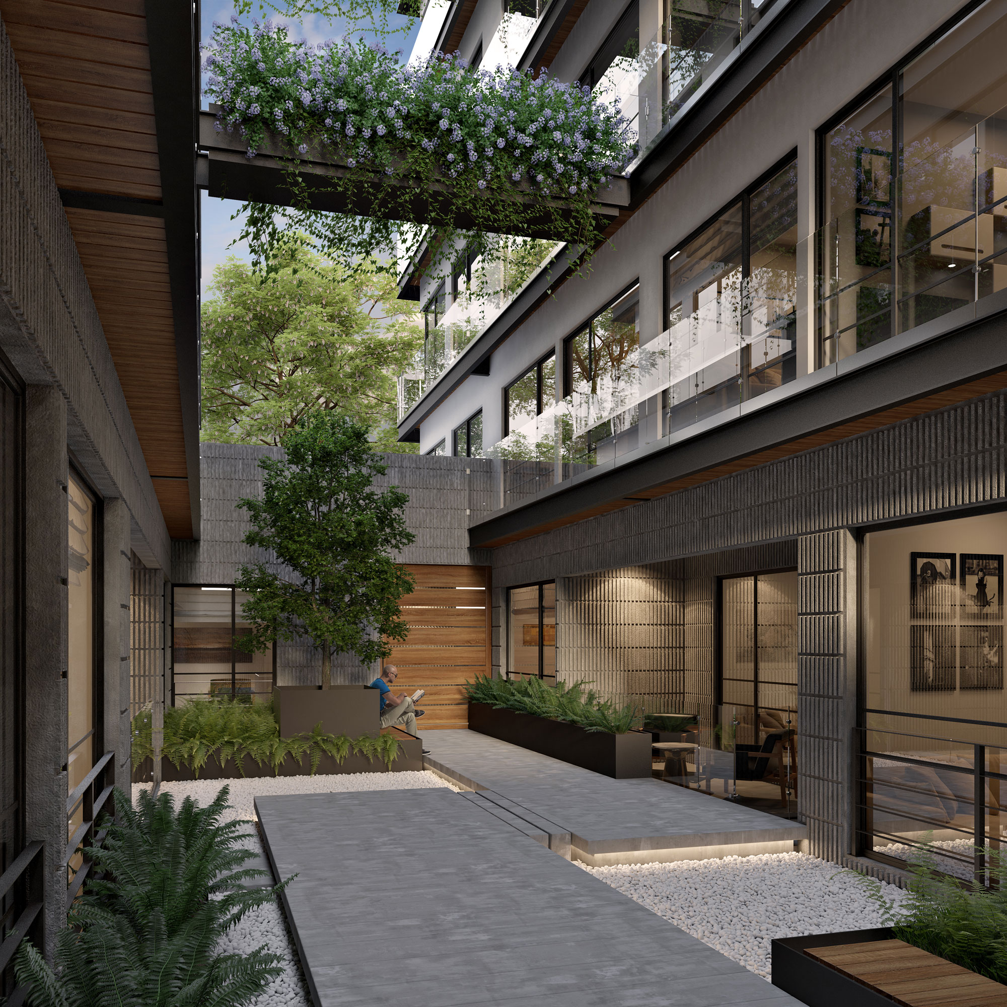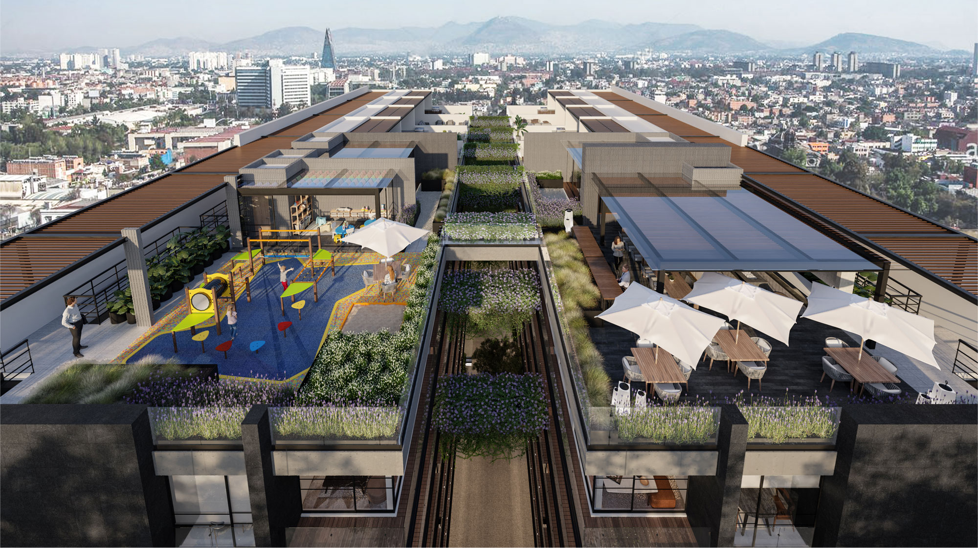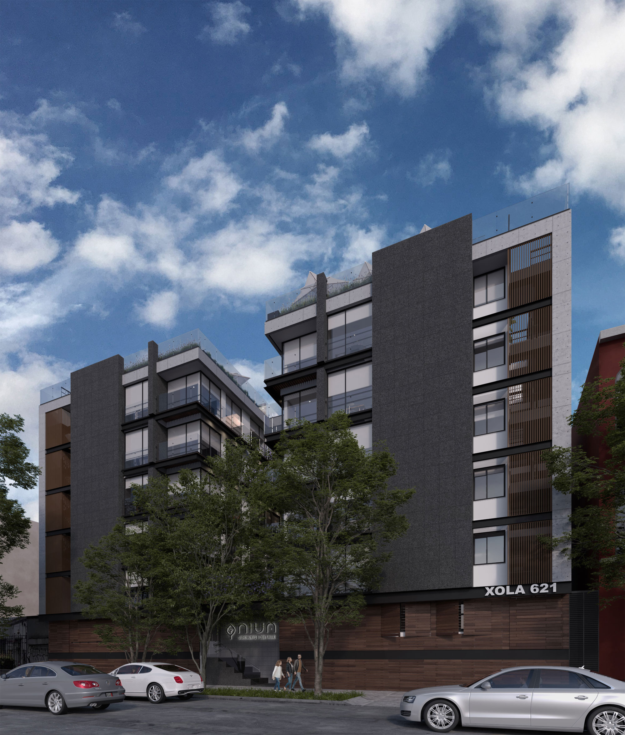 El desarrollo cuenta con 81 departamentos distribuidos en dos torres de seis niveles cada una, gran variedad de amenidades para uso de todos los habitantes. El principal atractivo de NIUA son sus amplios espacios exteriores, los cuales cuentan con múltiples áreas verdes, entre ellas un patio central que gracias a su diseño de paisaje nos transporta fuera de esta ciudad. NIUA ofrece espacios tanto de coworking como lúdicos para que los habitantes no tengan la necesidad de salir de casa y no se sientan encerrados dentro de ellos. Cuenta con dos roof gardens, uno para el uso exclusivo de adultos y el otro más enfocado a los pequeños. Cada departamento, al tener vista hacia el patio central, ofrece un contacto con el exterior, ya sea por medio de terrazas, balcones o ventanales.