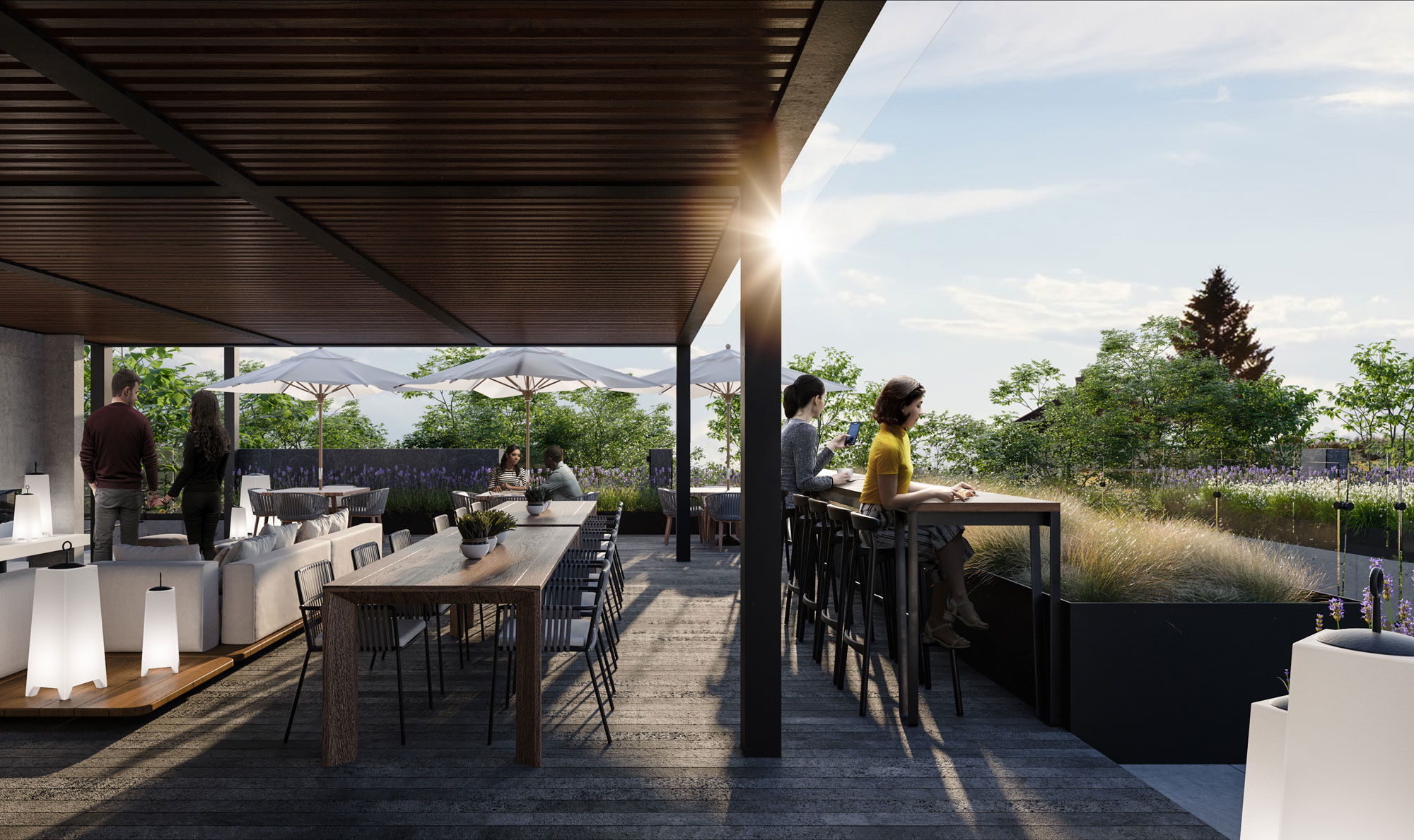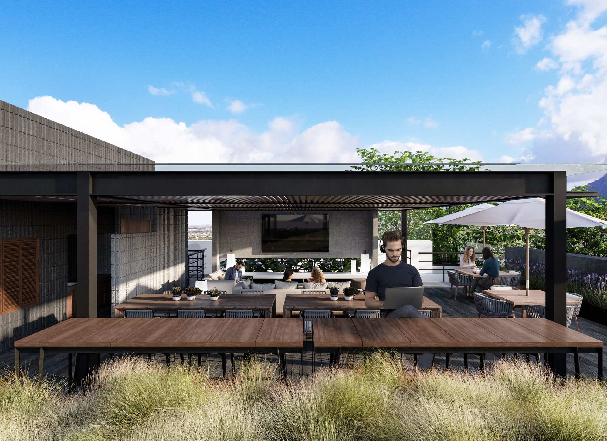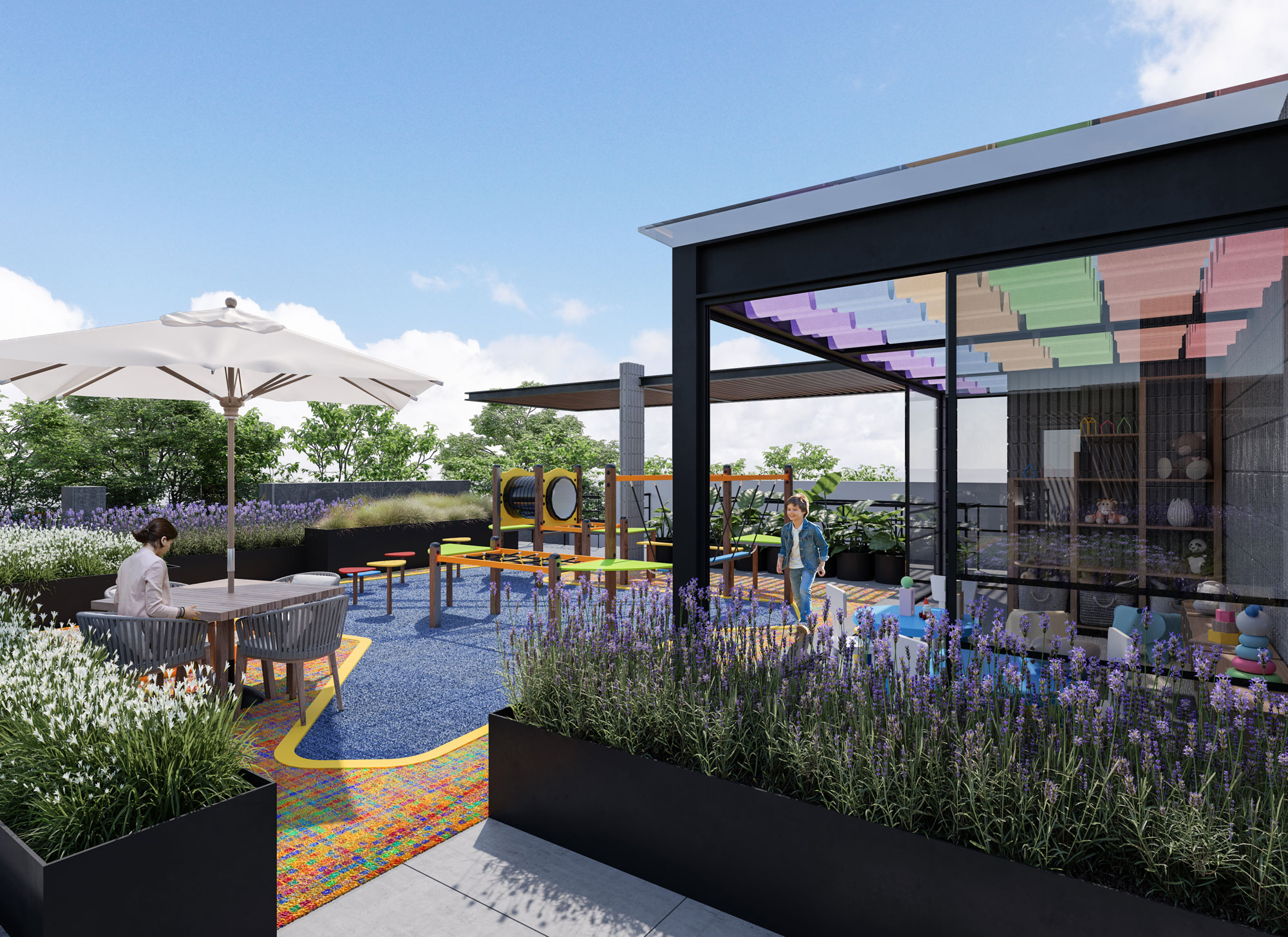 El desarrollo cuenta con 81 departamentos distribuidos en dos torres de seis niveles cada una, gran variedad de amenidades para uso de todos los habitantes. El principal atractivo de NIUA son sus amplios espacios exteriores, los cuales cuentan con múltiples áreas verdes, entre ellas un patio central que gracias a su diseño de paisaje nos transporta fuera de esta ciudad. NIUA ofrece espacios tanto de coworking como lúdicos para que los habitantes no tengan la necesidad de salir de casa y no se sientan encerrados dentro de ellos. Cuenta con dos roof gardens, uno para el uso exclusivo de adultos y el otro más enfocado a los pequeños. Cada departamento, al tener vista hacia el patio central, ofrece un contacto con el exterior, ya sea por medio de terrazas, balcones o ventanales.