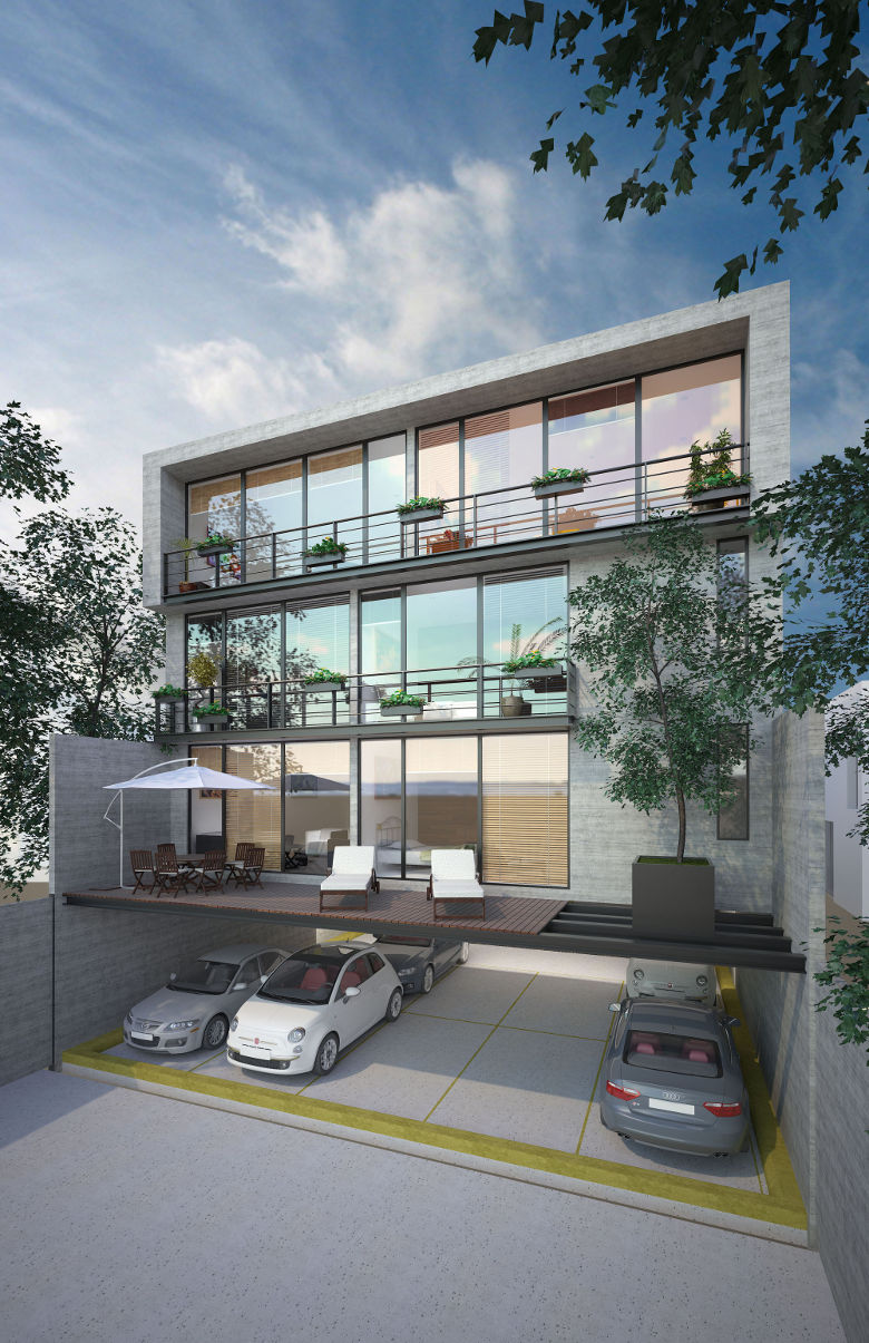 Edificio habitacional de 3 niveles ubicado en la Colonia Vertiz Narvarte. Cuenta con 6 departamentos y 2 Pent house de una superficie entre los 83 a los 140m2. Cuenta con 14 cajones de estacionamiento, bodegas, espejos de agua y Roof Gardens. Los departamentos cuentan con 1 a 2 recámaras, 1.5 baños a 2 baños completos. Los Pent House cuentan con 3 recámaras con baño completo cada una y la principal con Walk-In-Closet.