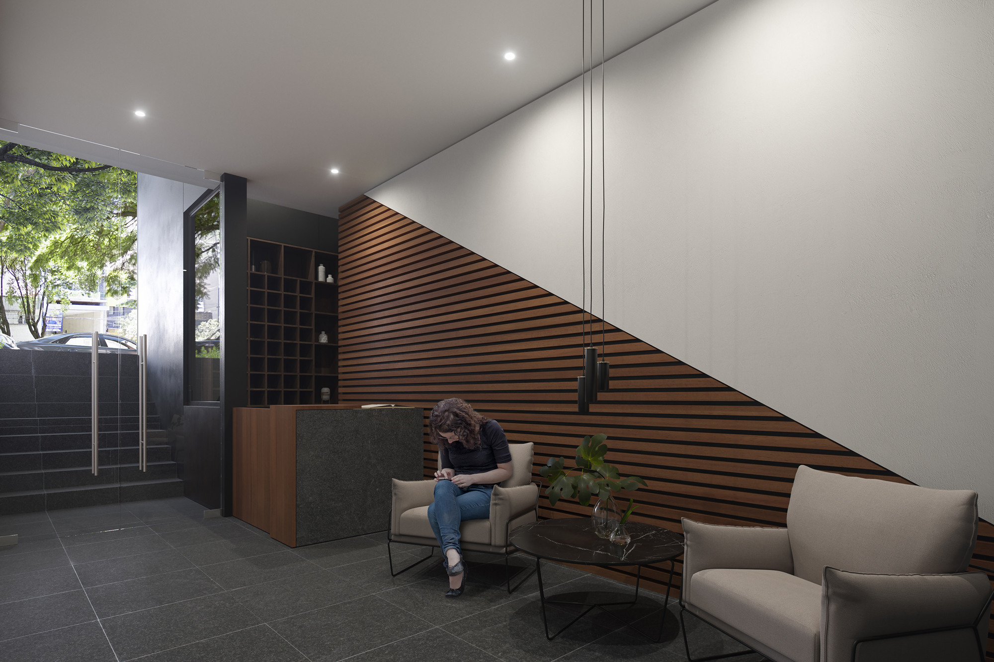 Desarrollo de 20 departamentos de 67 a 103 m2 y 4 Pent House de 177m2. Los departamentos cuentan con cocina, estancia - comedor, lavandería , dos recámaras, dos baños completos y balcón. Los Pent House, cuentan además con una tercera recámara.